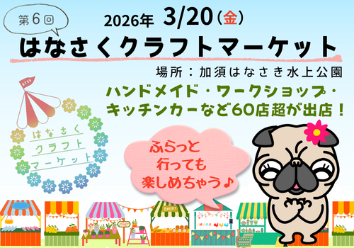 ・3/20(金祝)ははなさき水上公園にてはなさくクラフトマーケット✨