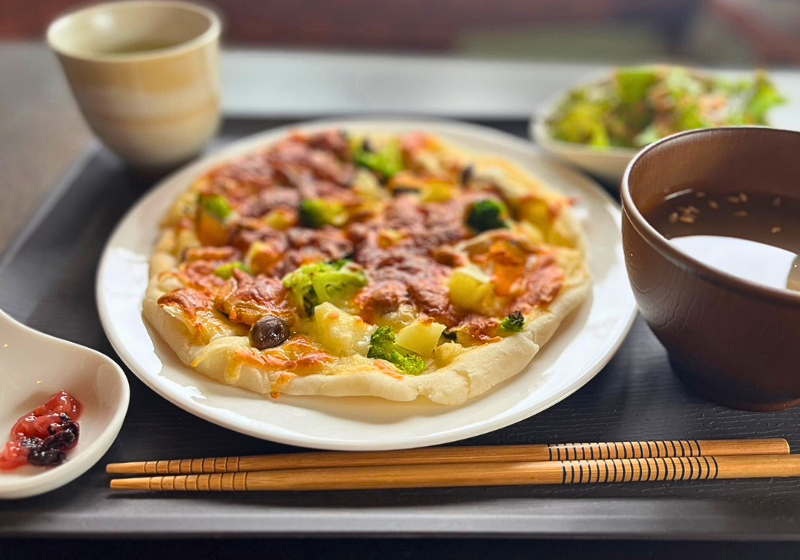 当面の間、ランチメニューは、米粉のピザをメインとした