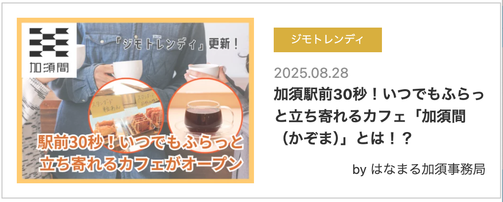 「おもちゃのすずき」さんの跡にできた「加須間」さんは、駅から徒歩30秒の場所にあるコミュニティカフェ。電車の待ちの時間を過ごしたり、帰りがけの軽食や気分転換にもピッタリなんだって♪カフェだけでなく、イベントを開催したり、いろんなことができる新しい加須の秘密基地!みんなも行ってみてほしいワン!