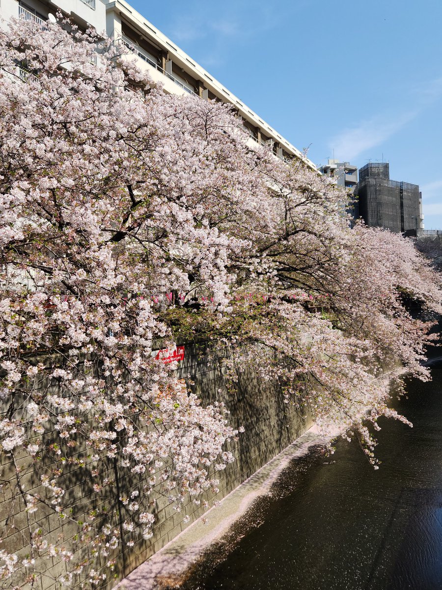 平日でも人混み。目黒川。外国の方も増えてきましたね。