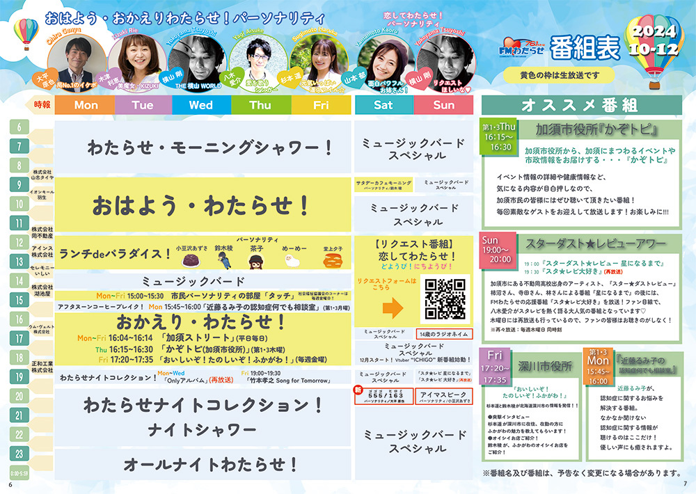また、土日に放送されているぶっつづけ5時間リクエスト番組「恋してわたらせ」では県外からも沢山リクエストがあり、日本全国に加須市を広げる一助にもなっています。