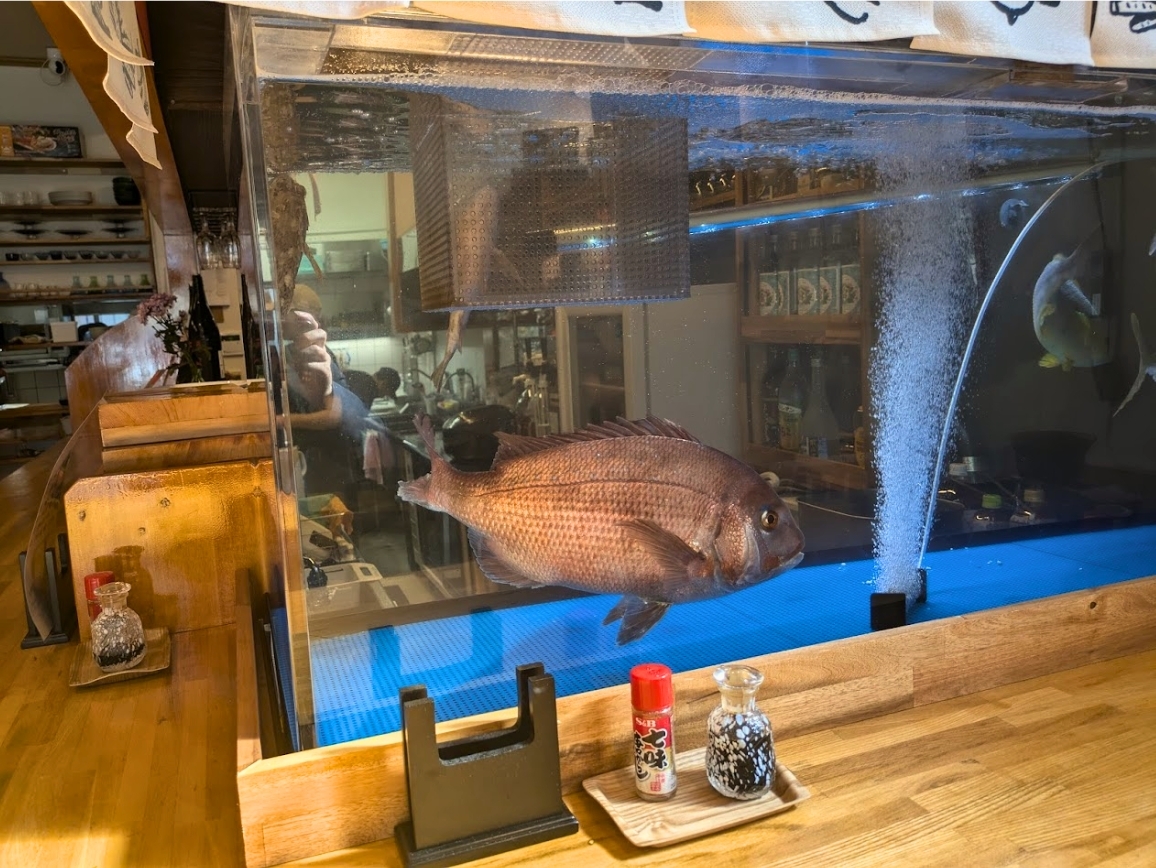 そして、店内のカウンターには大きな水槽があり目を惹きつけられます。