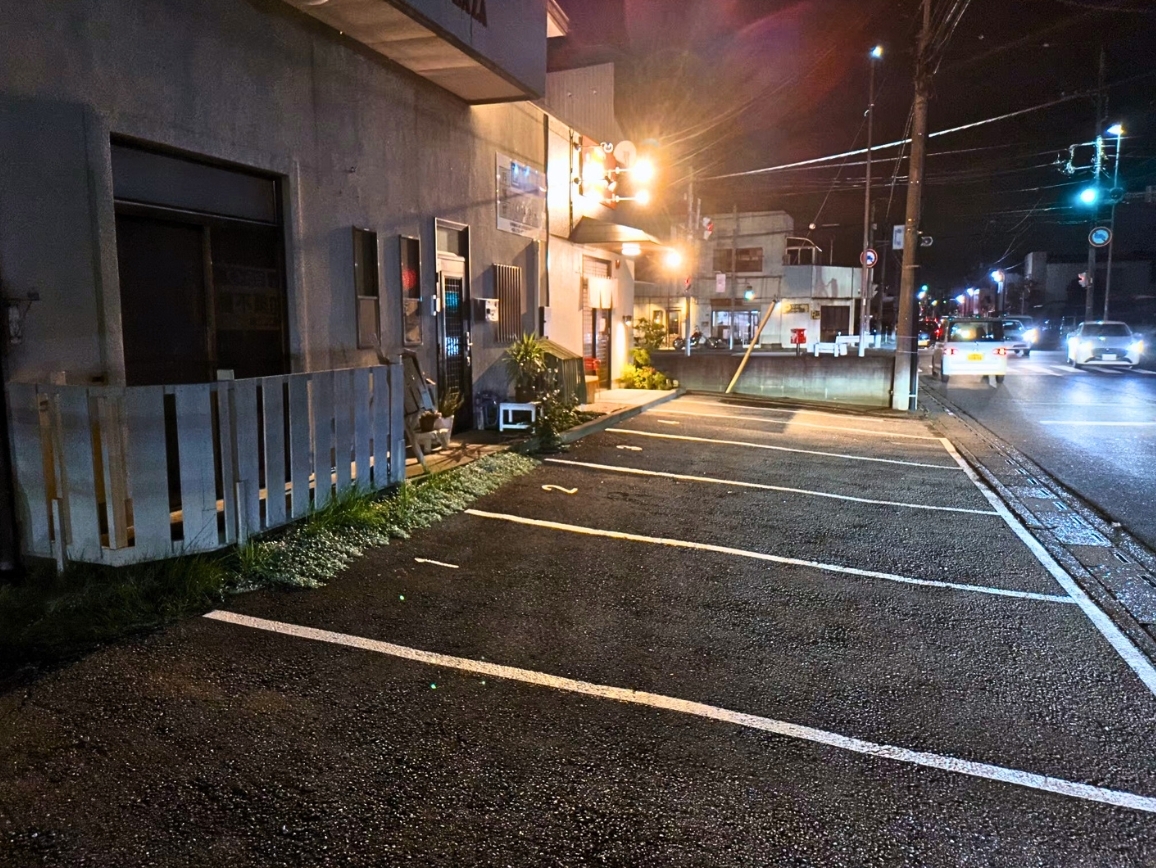 駐車場は店舗前の1~4番、店舗横の15~17番の7台分ご利用できます。