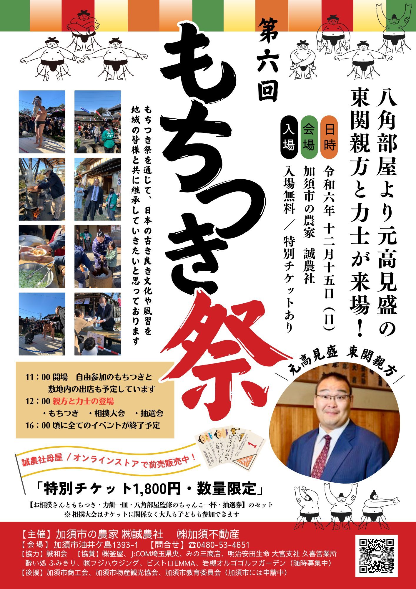 ※入場無料、自由参加の餅つきも無料ですが、力士との餅つきや、抽選会に参加したい場合は特別チケットが必要になります。