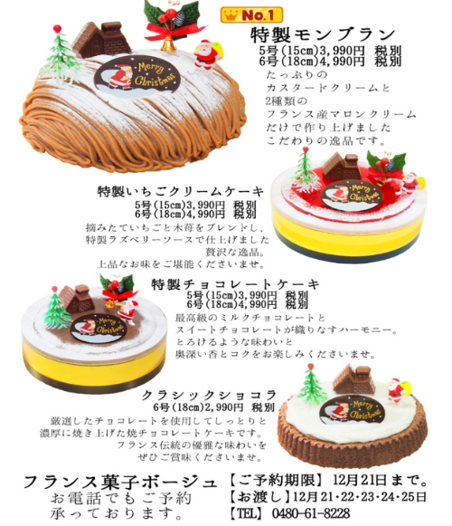 加須市の人気店や隠れた名店から、贈り物にもぴったりなクリスマスケーキをピックアップしました。