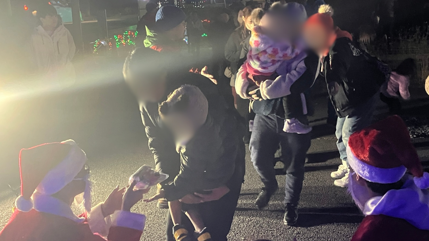 花火の前に新たなサンタクロースさんが登場し、3歳以下のお子さんに100個限定でお菓子をプレゼントしていました!
