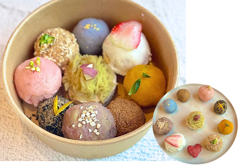 それぞれのカラーのトリュフ風ボールの中には、