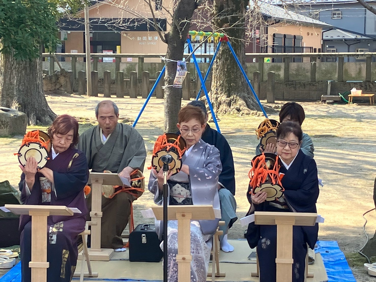 高砂会による鼓演奏。玉敷神社奉納射会から演奏していただいています。