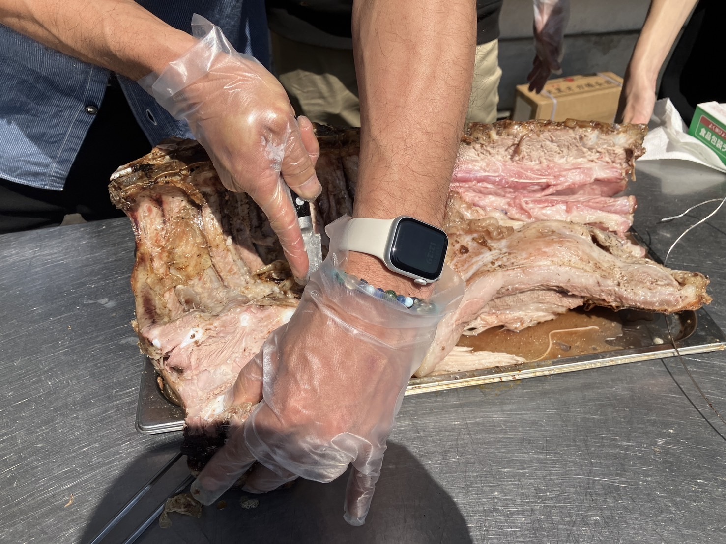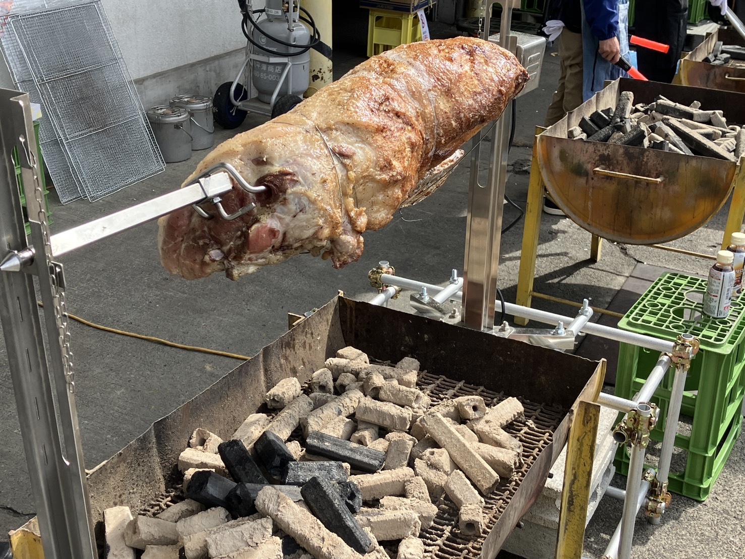 豚の丸焼きは、切り分けているのを見ているだけでもう優勝確定ですね。向かうとこ敵なし。さすが加須が誇る香り豚。