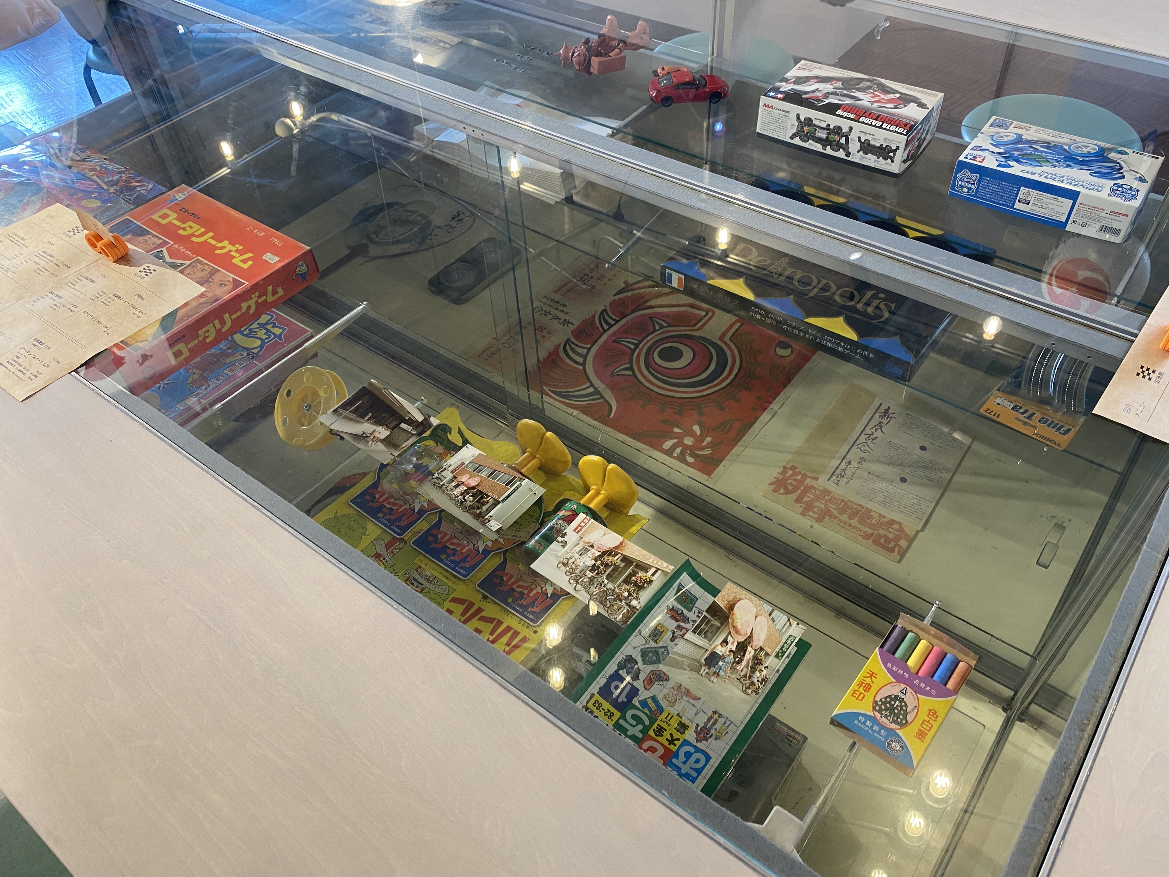 昔この場所にあったおもちゃ屋さんを思い出させるレトロな玩具や雑貨が飾られています。