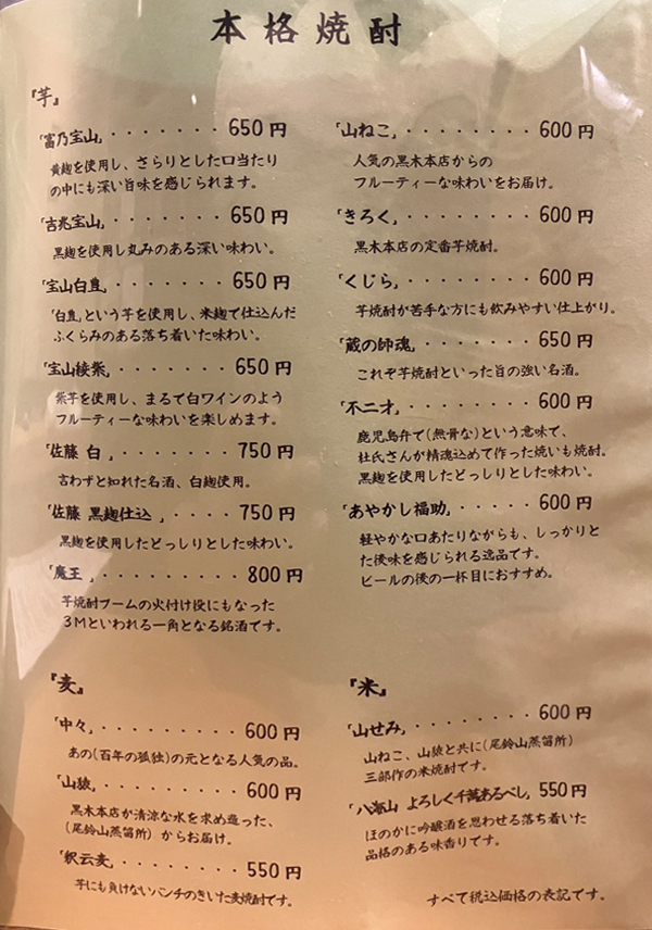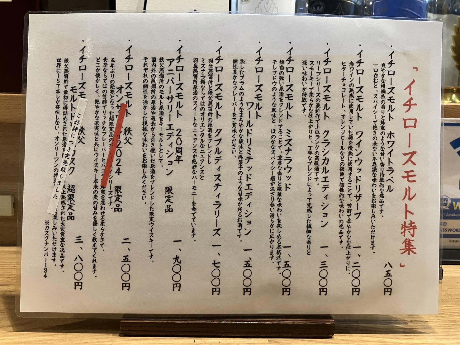 なかなか他の店などでは呑むことができない入手困難な日本酒だけではなく、こだわりのウィスキーや焼酎なども提供されています。