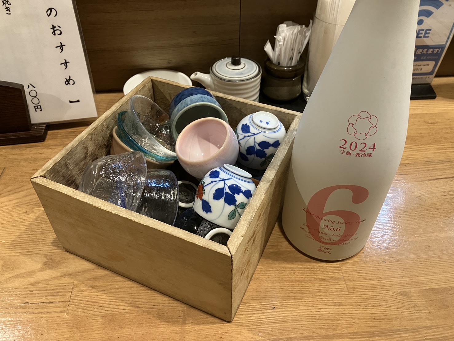 日本酒を呑む際のぐい呑みは、飲み比べ放題に限らず、提供される日本酒ごとにお客さんが選べるそうです。