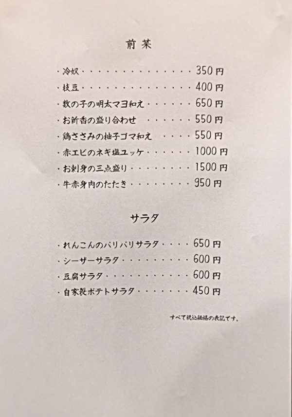 本当はお通しと料理一品でお酒をもう一杯追加したいところではありますが、テンションが上がりすぎてこの後に日本酒飲み比べ放題を頼む予定なので料理は多めに♪