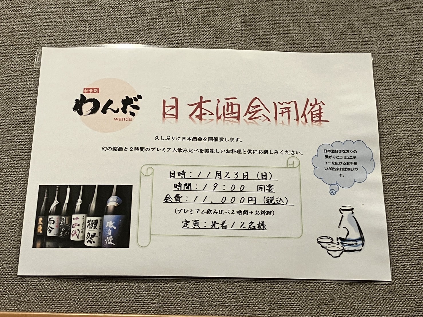 そして11月23日(日)には、年に数回しか開催しない「日本酒会」を開催します!!