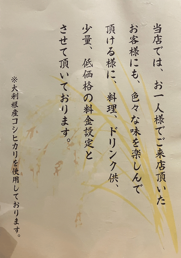 (ちゃんと同店はお酒が吞めなくても食事だけでも楽しめるように、お茶漬け各種やおにぎり、ご飯セットなどもご用意しております)