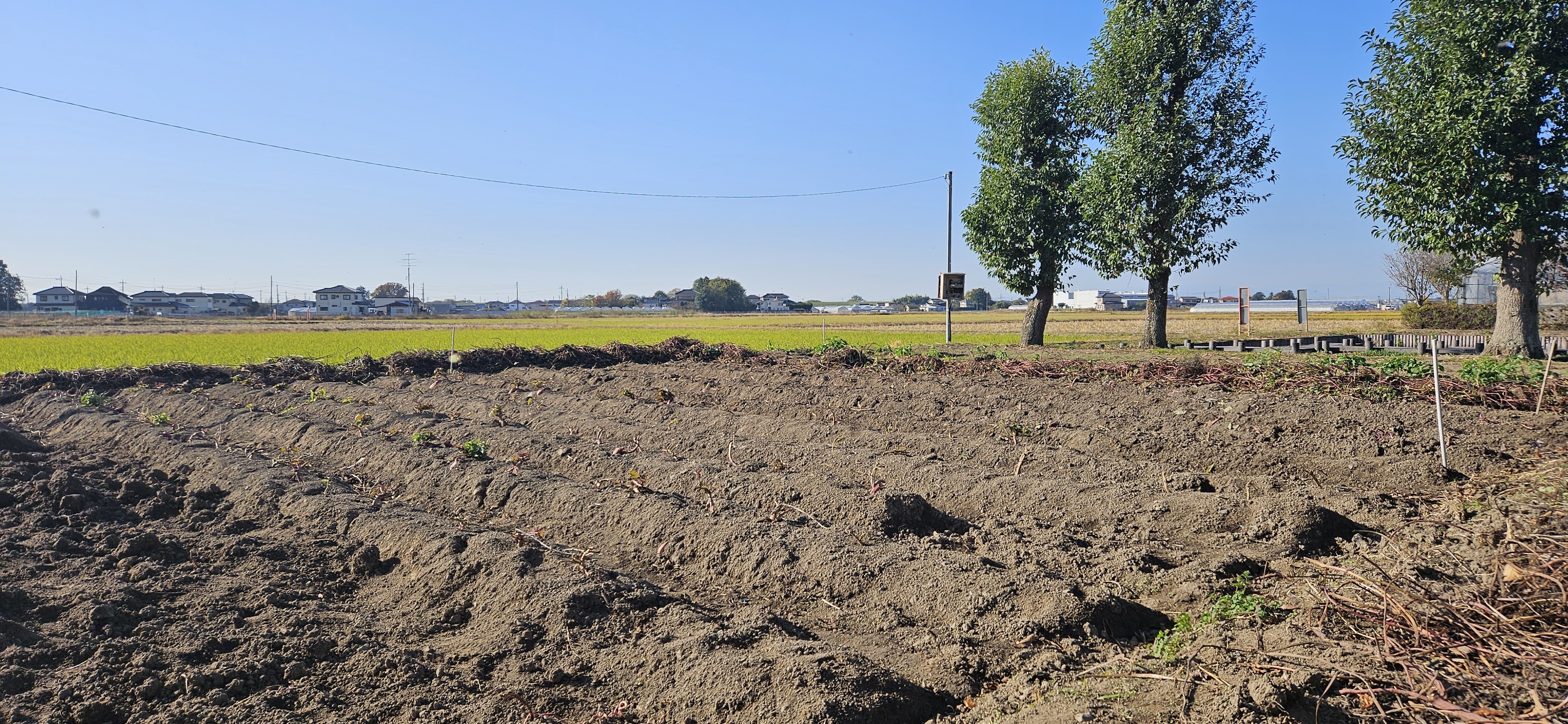 目の前に広がっていたのは、すっきりとした“土の畝(うね)”がずらりと並ぶ、まさに 「これから掘りますよ!」 という雰囲気の畑。
