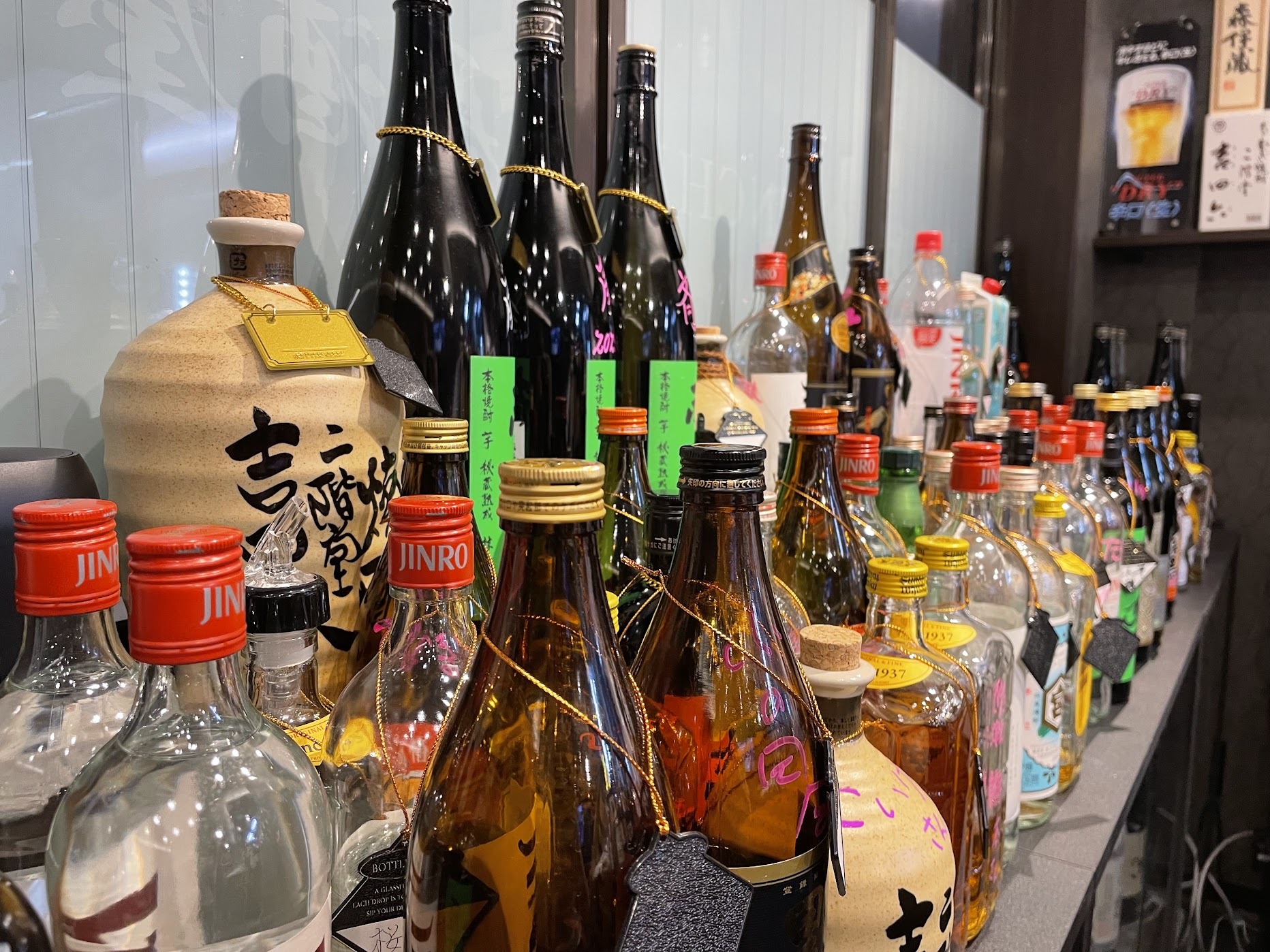 そして、驚くのは焼酎の種類の多さ!見てください、この圧巻の焼酎たちを!