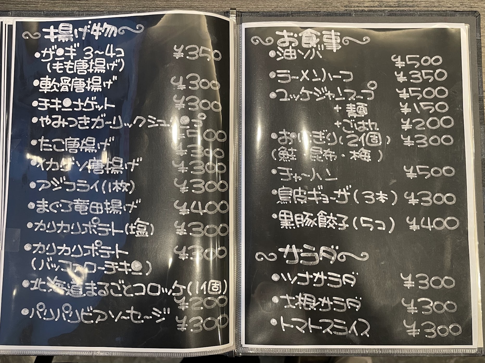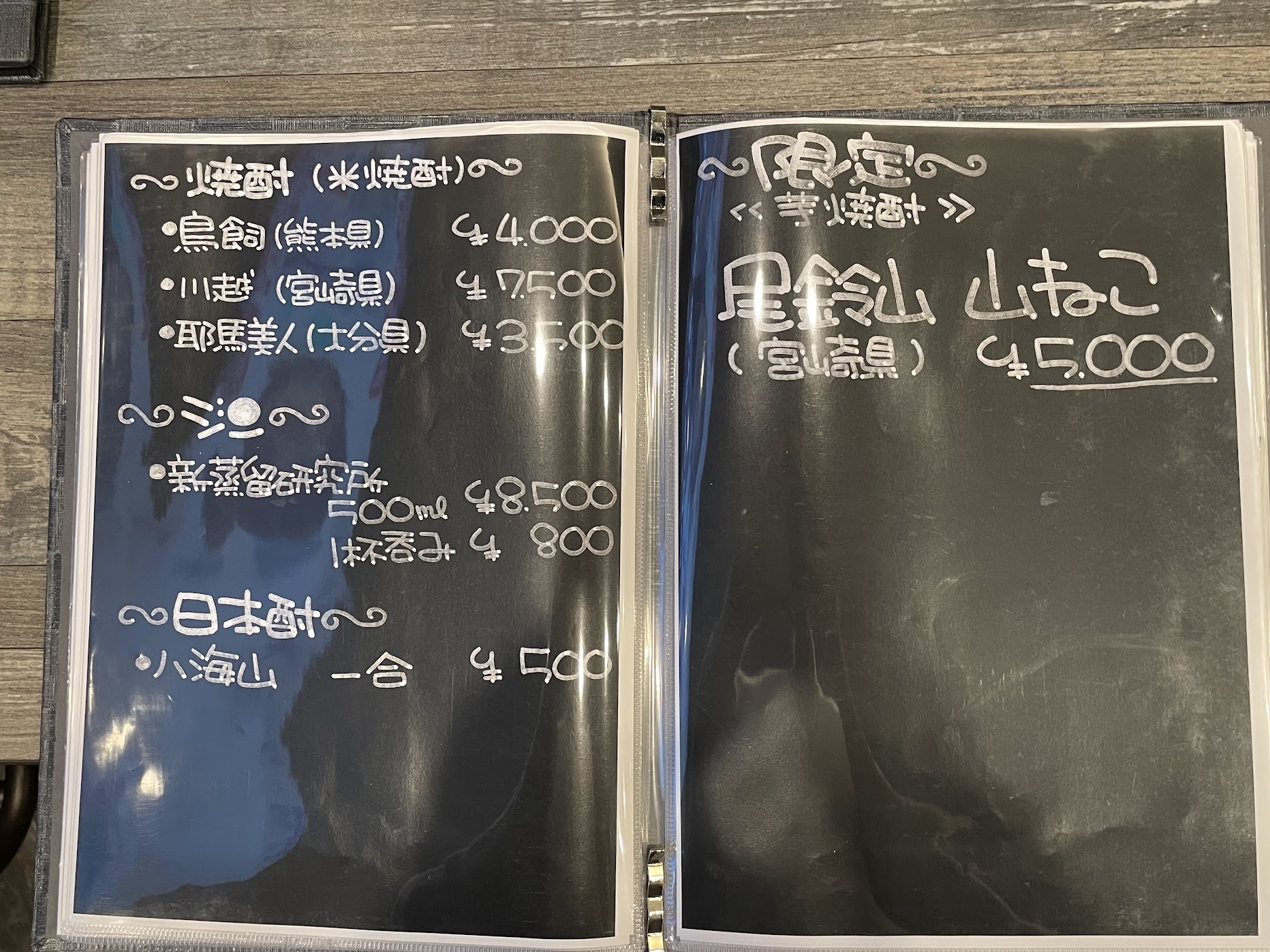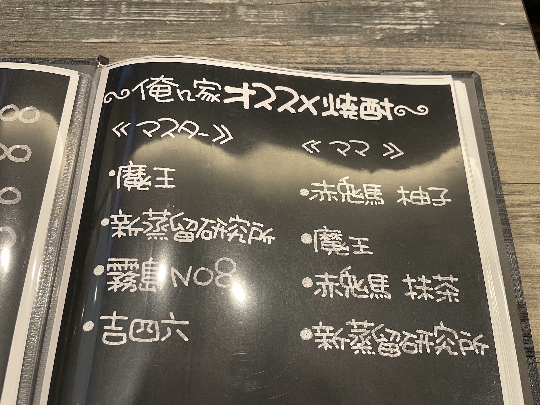 メニューの中で特に私が”いいなぁ”と思ったのは、「俺ん家オススメ焼酎」。マスターとママのおすすめが記してあるので、「何を飲んだらいいのかわからないなぁ」と思う人には、嬉しいですよね。