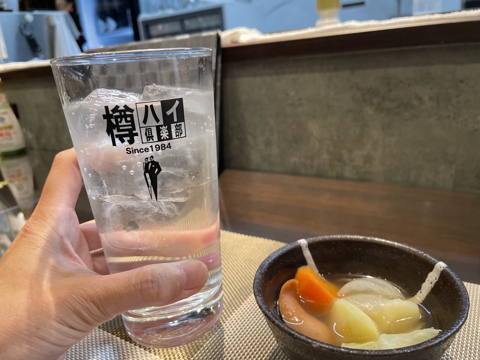爽やかなゆずの香りとほんのり甘みのある焼酎は、焼酎ビギナーでも楽しめるお味。お通しのポトフにも合いますねぇ…!