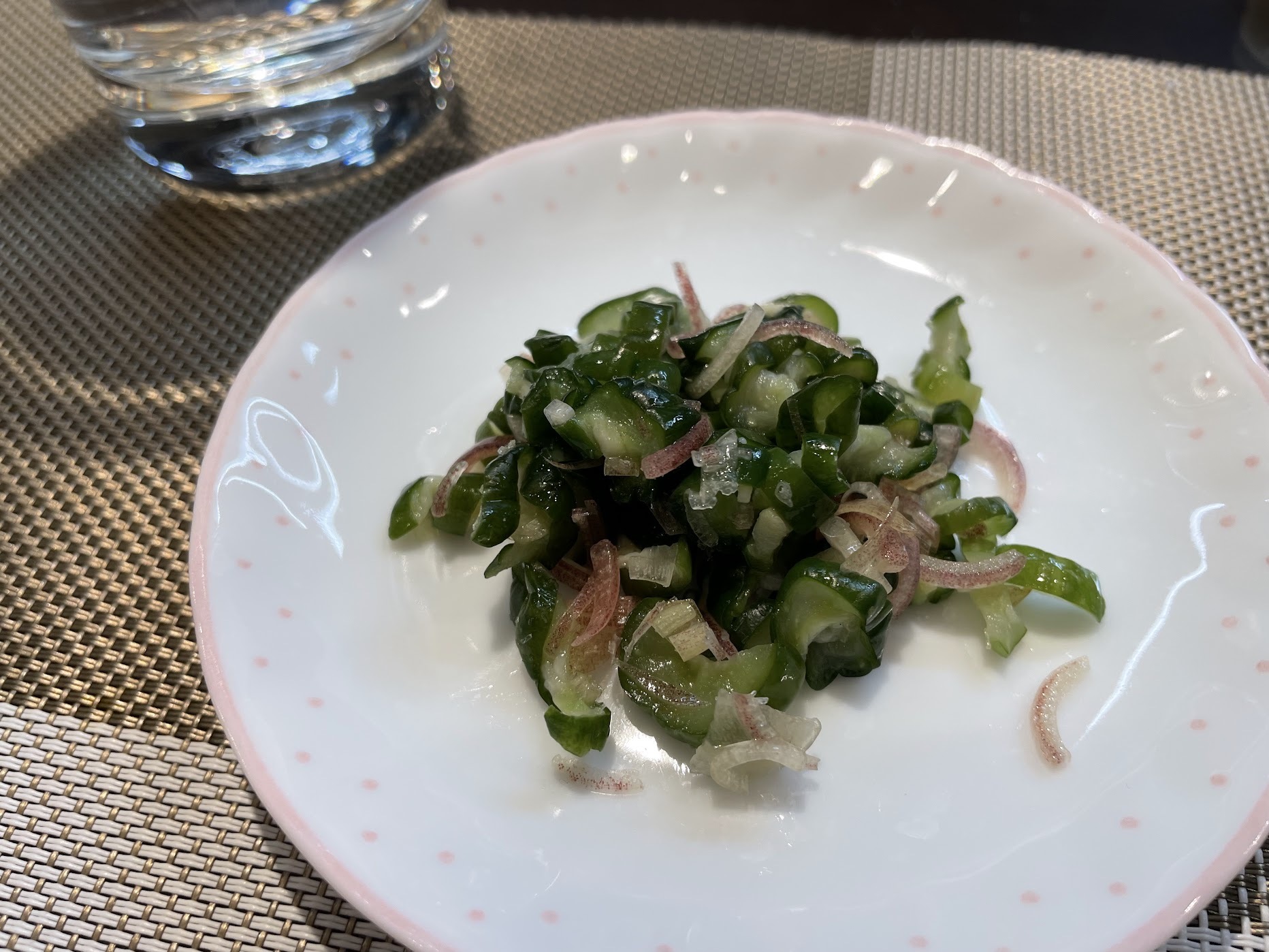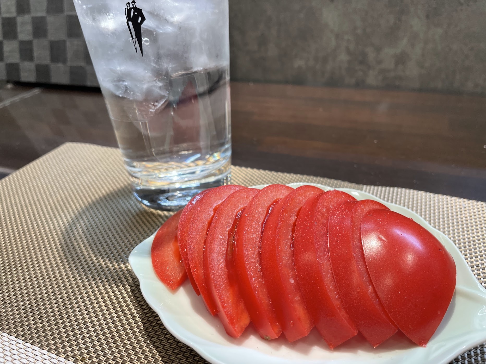 お次は「トマトスライス」「古漬け」を。トマトはママの実家の茨城県産のもの。甘みがあっておいしい。