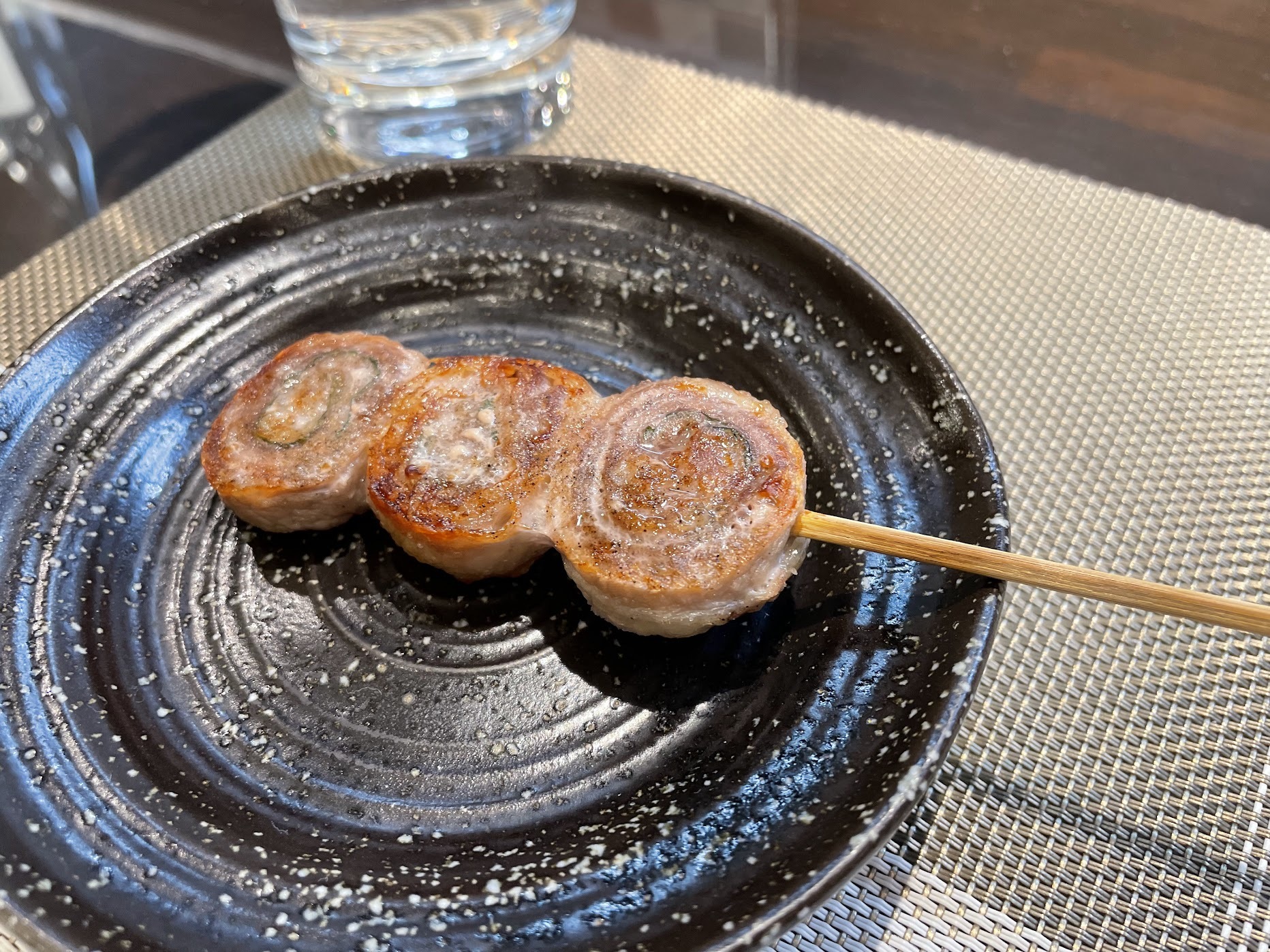 続いていただいた「豚バラ大葉巻き」も、豚肉旨みと大葉の香りがたまらない一品。お酒に合いますねぇ。