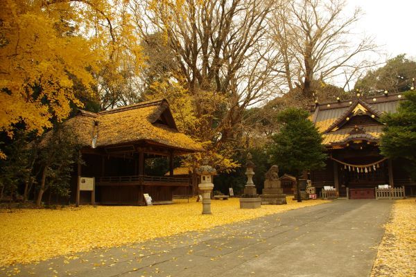子ねずみが訪れた12月初旬の玉敷神社は、銀杏の葉が黄金の絨毯のように美しい時期。