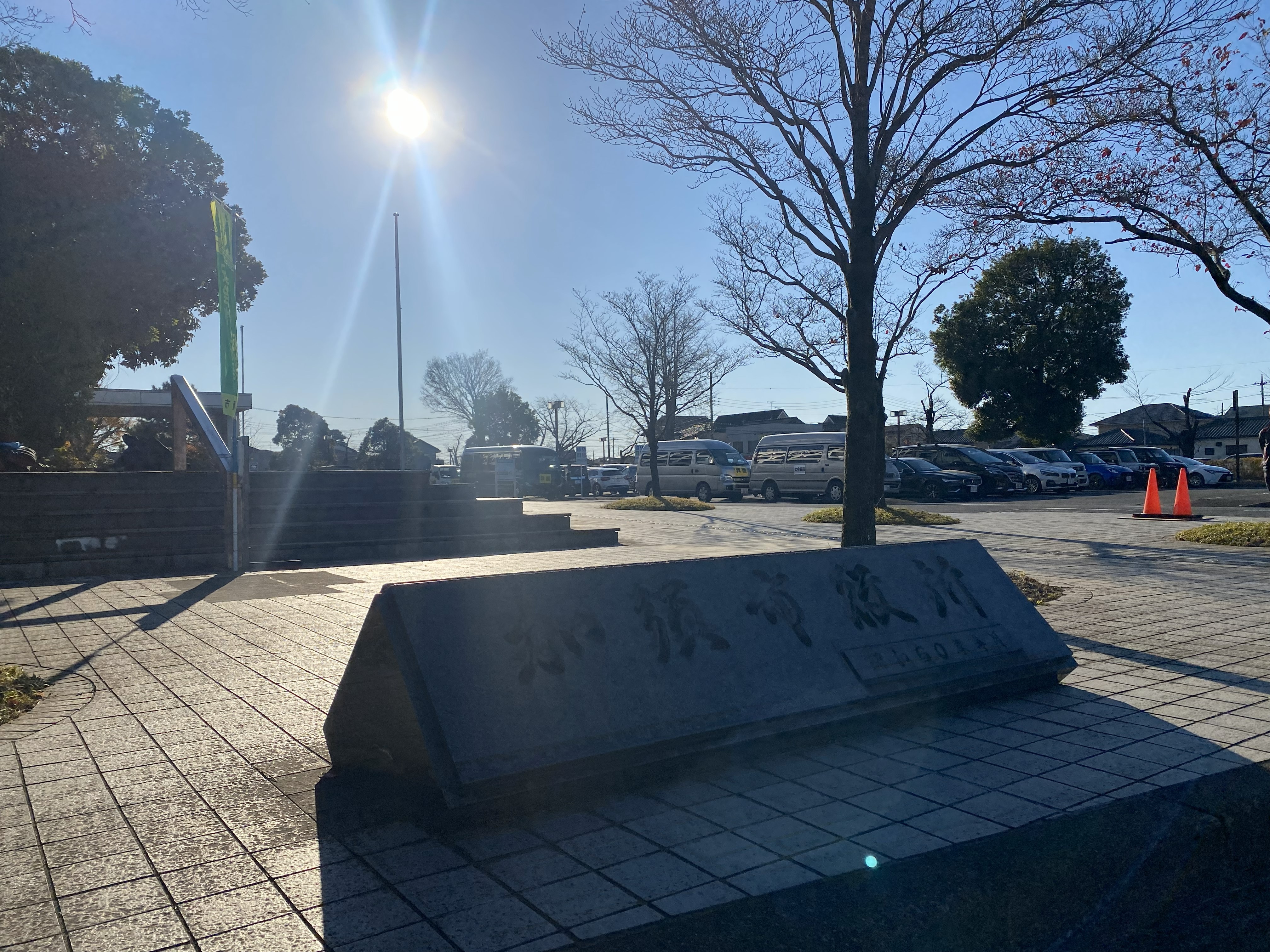 スタート近くの加須市役所にて。天気は雲ひとつない晴天