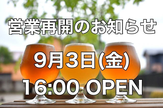 新しいビールを仕込むために一時休業中でしたが、本日16時より営業再開だそうです!(ただし、当面はテイクアウトのみ)