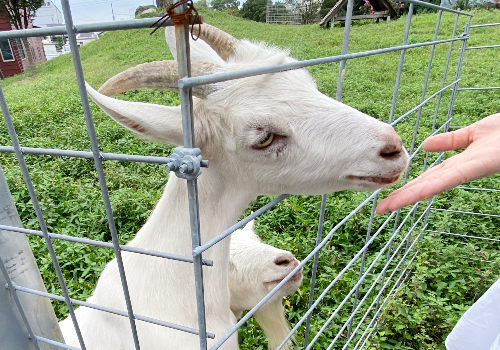 ヤギさんのご機嫌が良ければ撫でられちゃいます♪(嚙まれないように注意!)