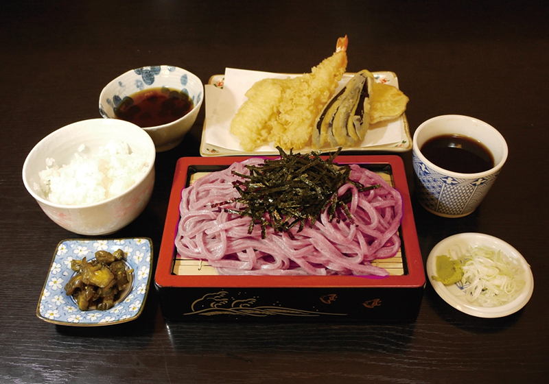 古代米の中でも黒系統の黒米を小麦粉に織り込んだのが「黒米うどん」です。薄い紫色と栄養価がプラスされます。