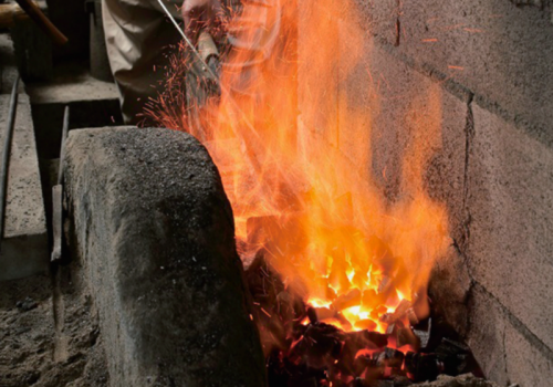砂鉄を原料に和鉄を作る、たたら製鉄を行っています。