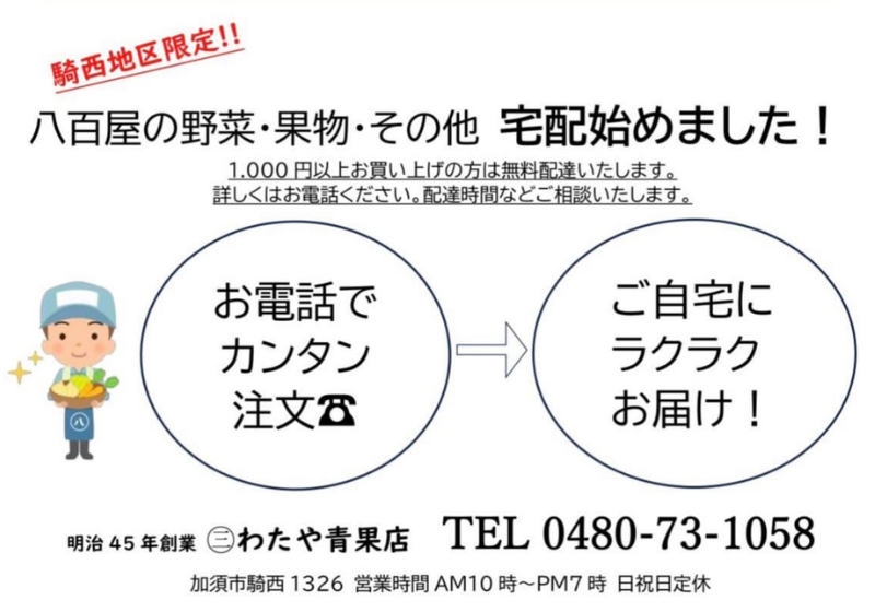 熊谷市場から仕入れた新鮮な野菜、青果をお届けします。